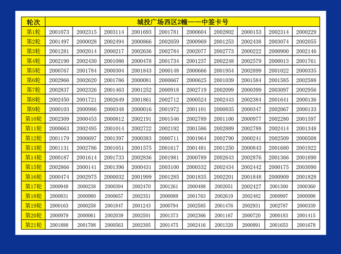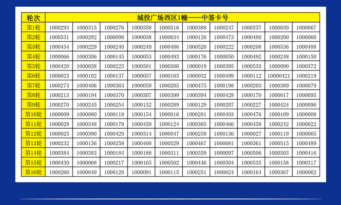 城投廣場西區(qū)1幢2幢搖號卡辦理名單公示